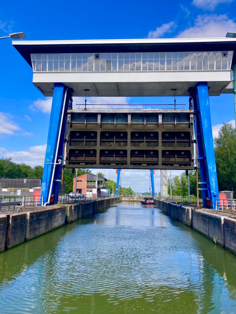A defining feature of the enlarged canal is the Strépy-Thieu boat lift, which we were soon to descend, one of my favourite Belgian canal exp[eriences.