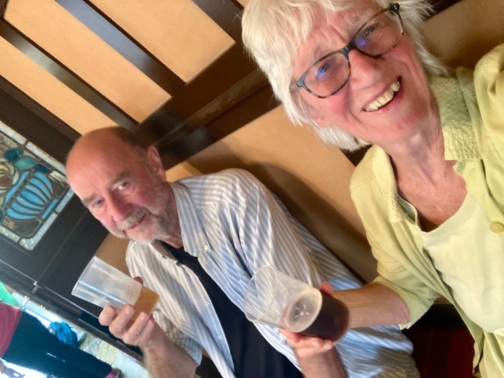 By noon we had tied up to a good size bollard and some strong railings, and were preparing our lunch. It is a quiet mooring, only disturbed by the ringing of the Pamela Kirk bells ….. and on this occasion live outdoor music!