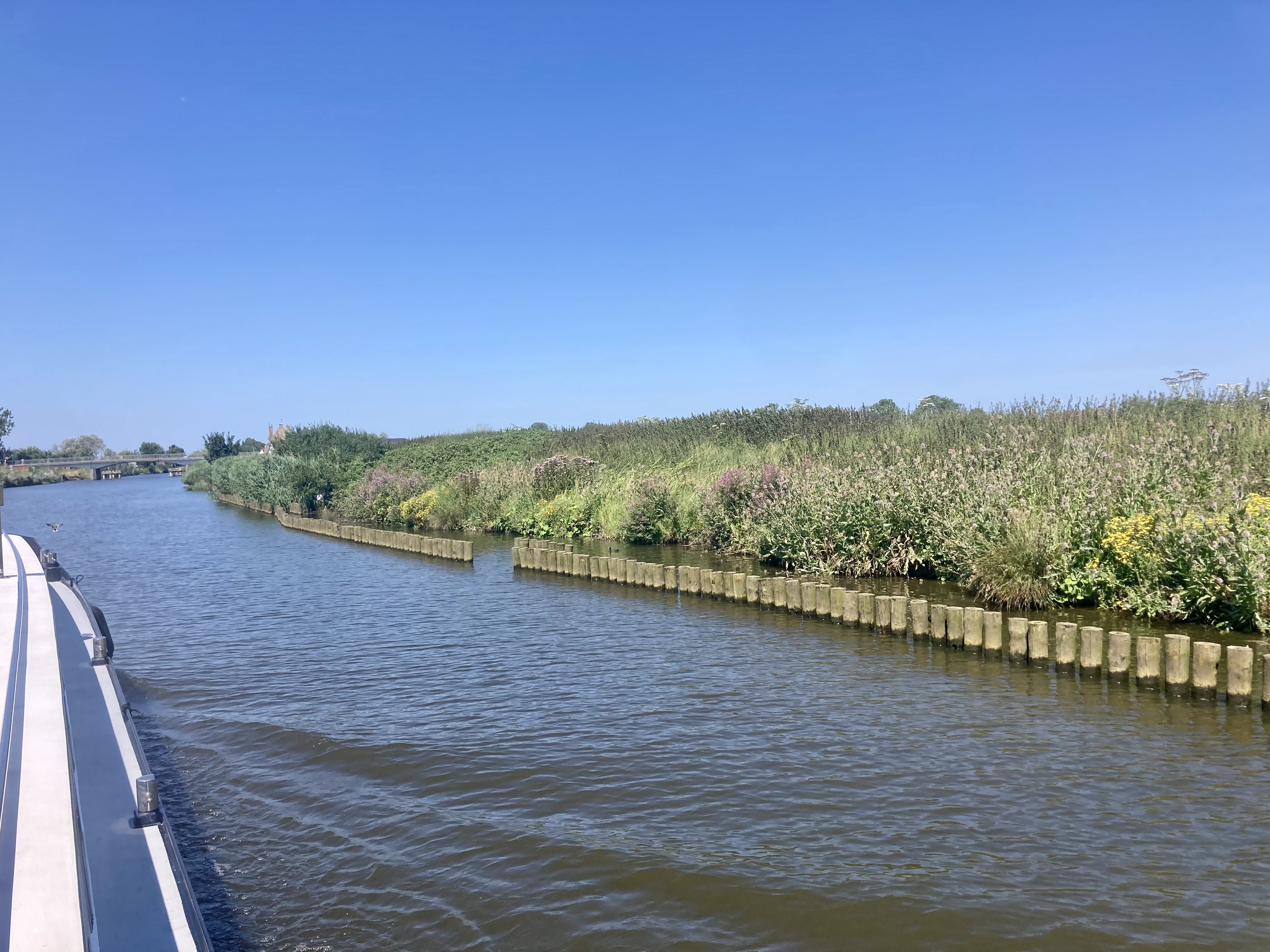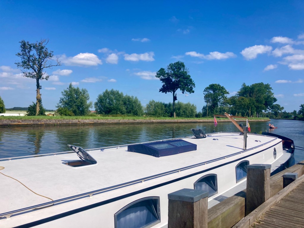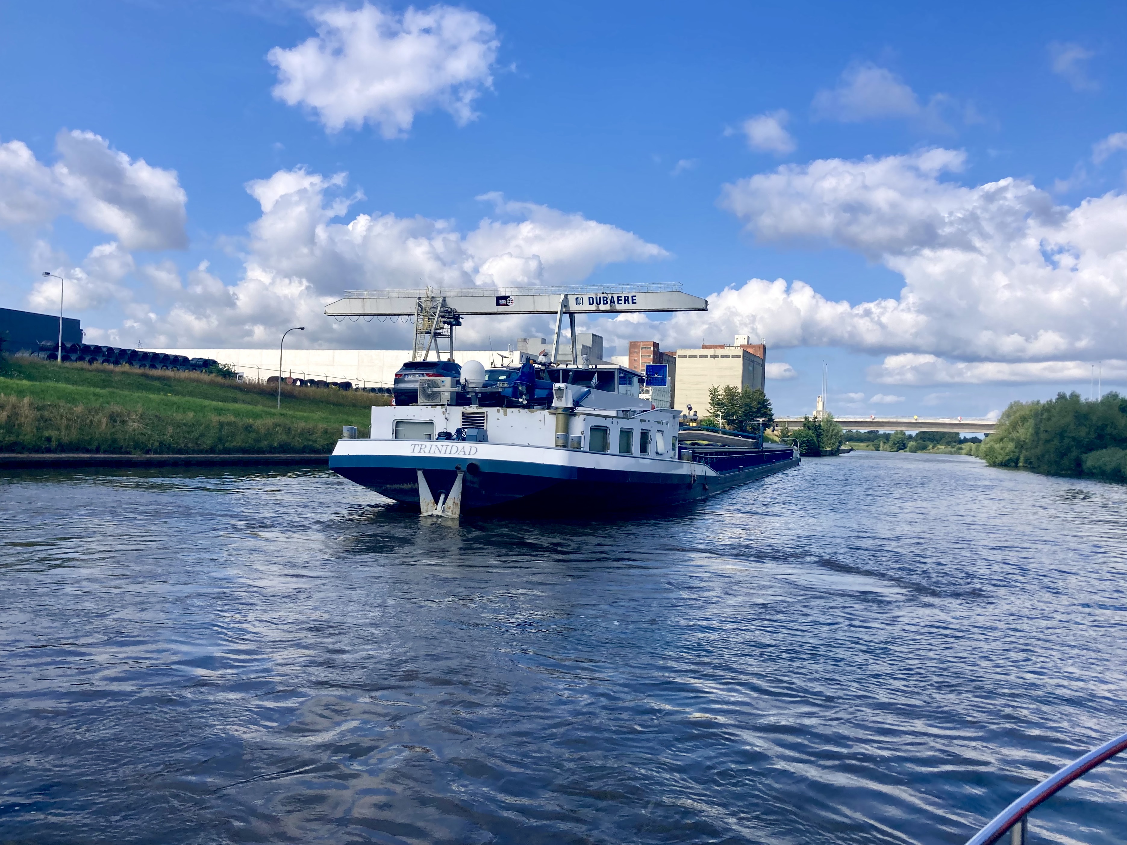 It is another straight and wide waterway, with no locks along the 14 kilometres we moved along, and with every bridge high enough to let us and the biggest of working barges through.