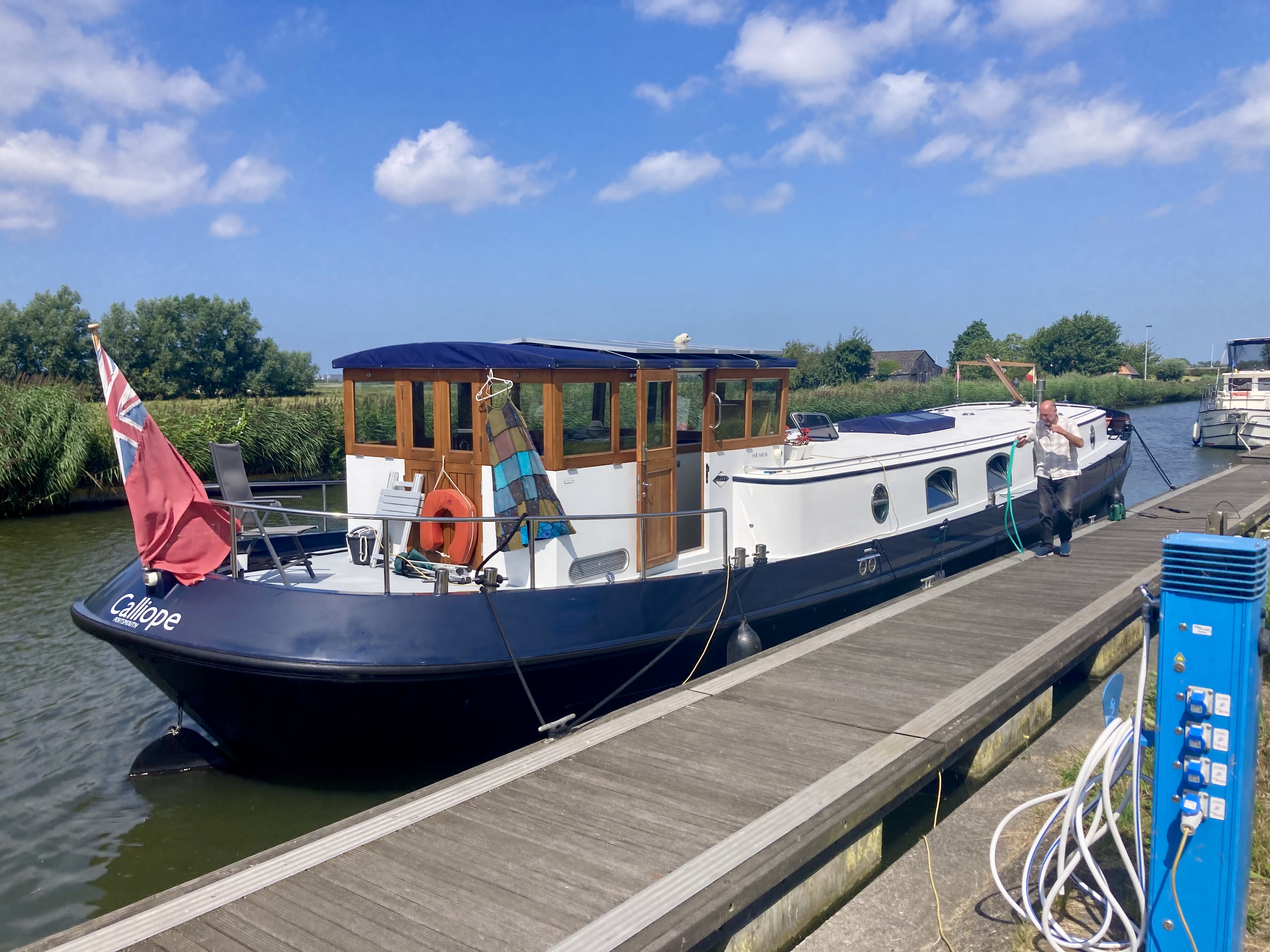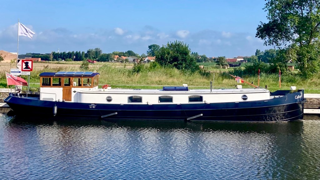 Calliope and crew proudly left Diksmuide with a newly painted hull and headed for the coast down the River Yser (Iser).