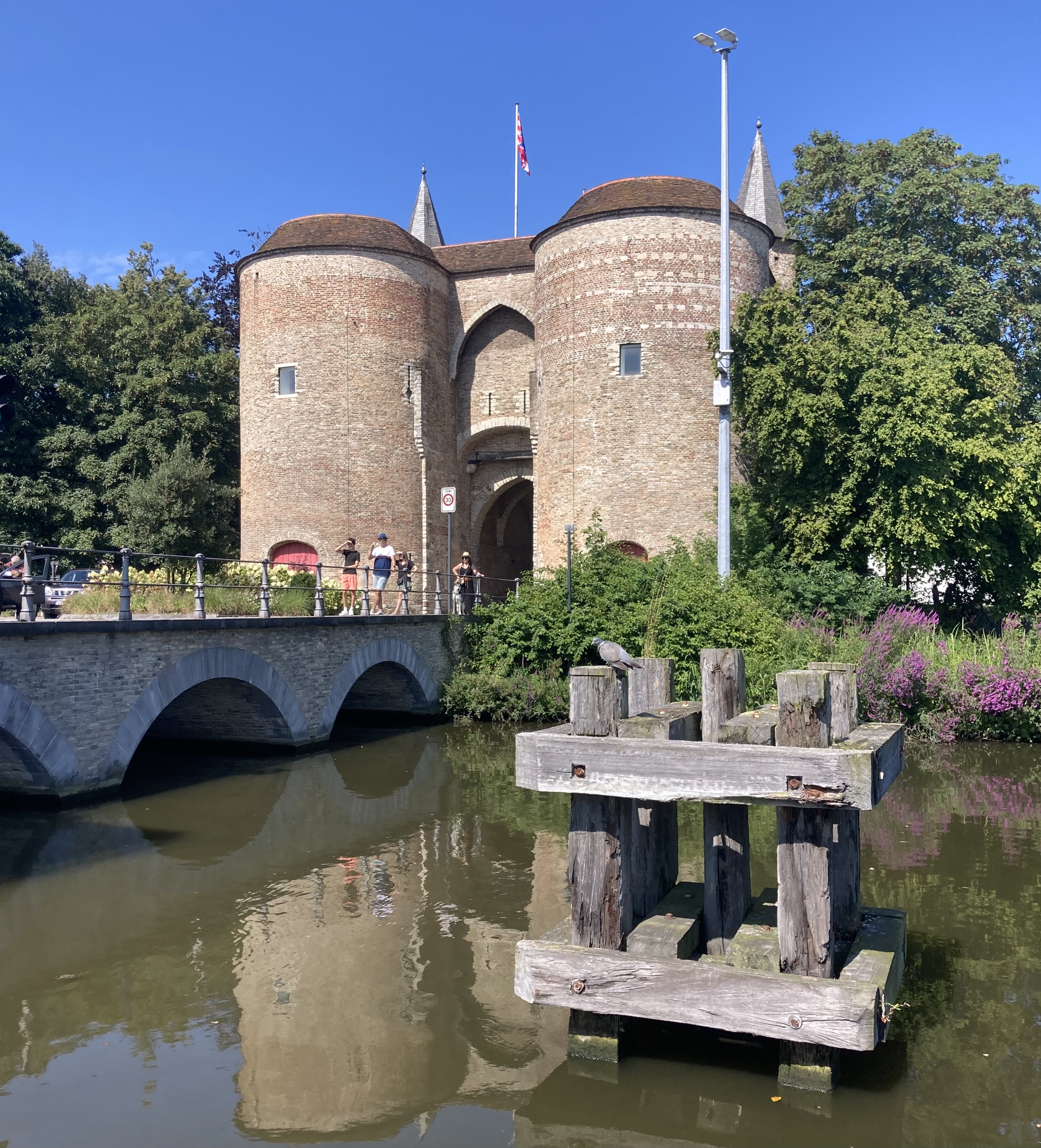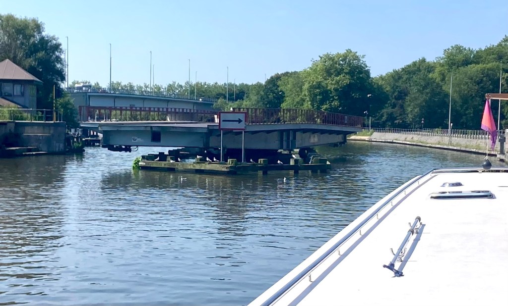 At the Coupure marina in Brugge we waved good bye to our new friends and continued to the next bridge – Saint-Kathelijnepoortbrug, a swing bridge – which initially did not swing for us.