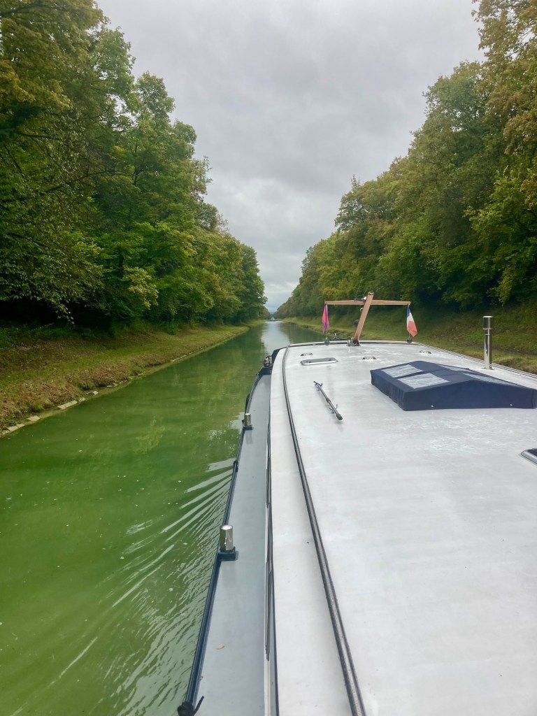 Such a lovely place to stay but we had to be off again next day, making up for the time lost earlier. It was a rather grey and misty day as we left Chalons, down the next straight section of canal towards Vitry-en-Francois.