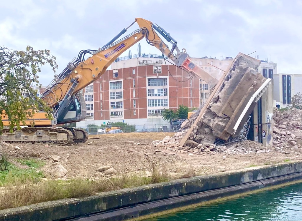 The evidence of the bridge demolition was still very evident. It may have disappeared from its position over the canal, but huge limps of concrete and roadway were still being broken up and removed.