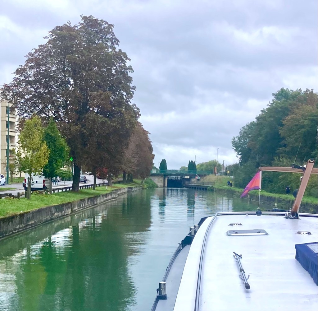 We had been waiting on this canal for 5 weeks, due to the canal closing upstream of Reims for maintenance on a lock. Now, with our son aboard to help us make up time with longer days of cruising, we were off from our mooring at Courcy towards the fine city of Reims.