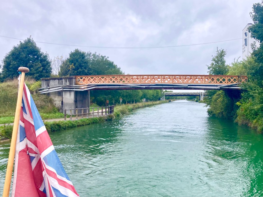 Going back a few weeks we had been hurrying towards Reims to avoid a 5 day holdup for the demolition of a bridge. That work was moved to night time only so would not have delayed us; we got caught instead by the 5 week closure!