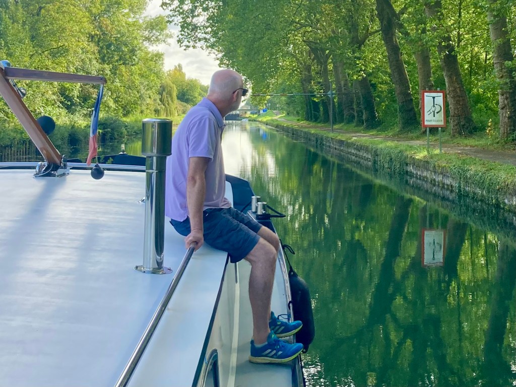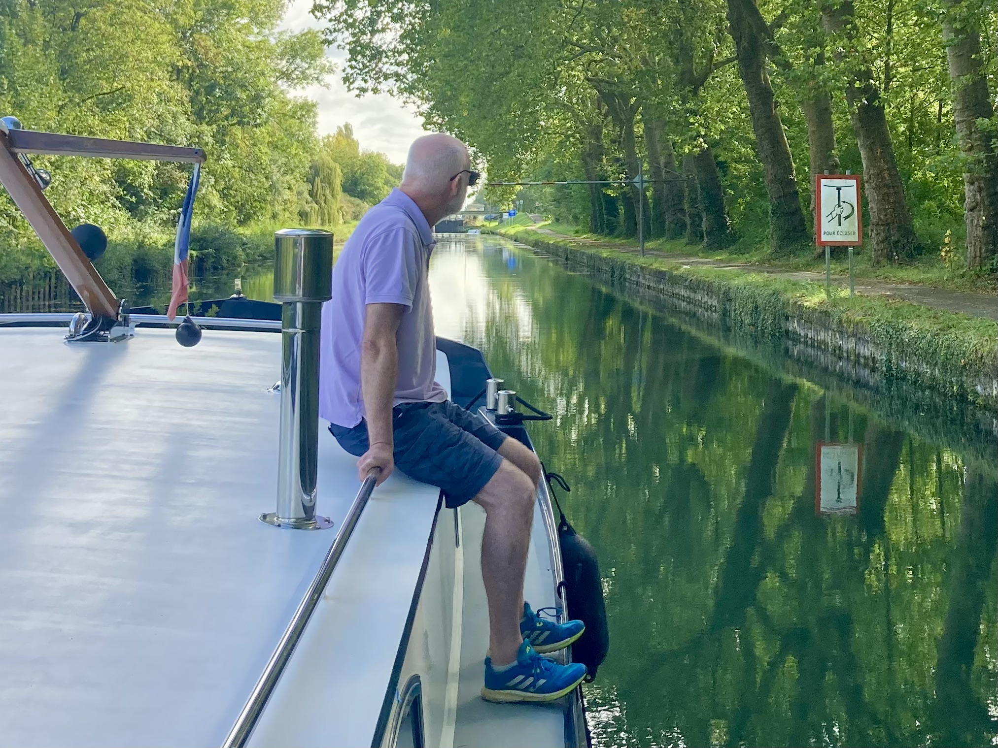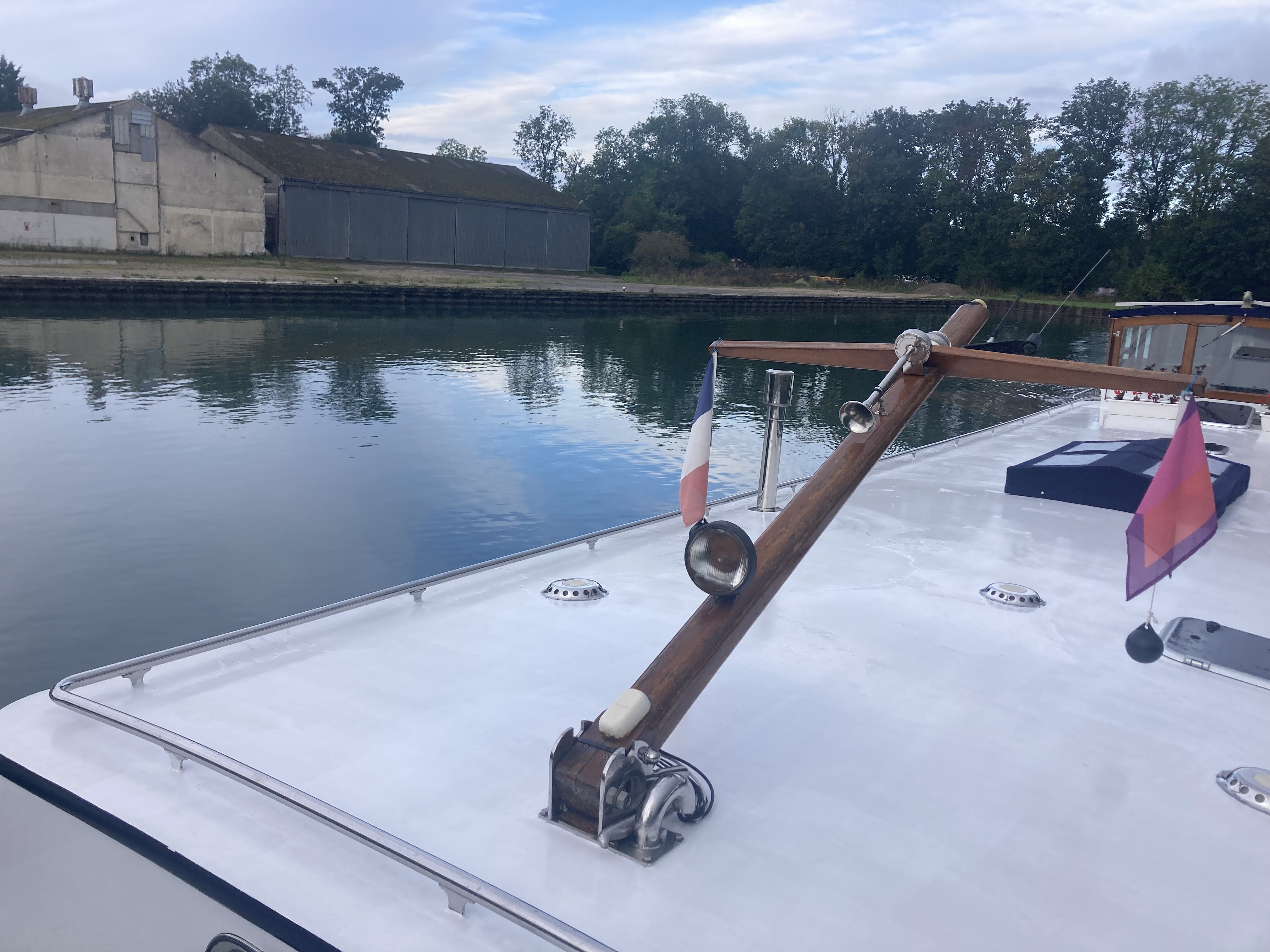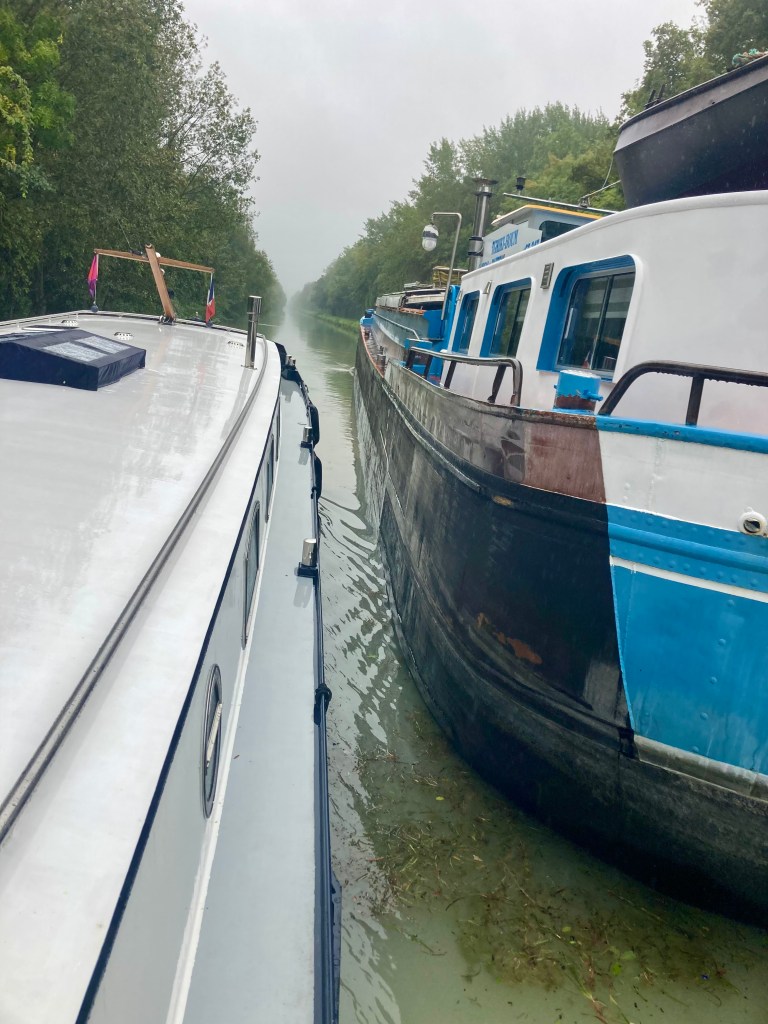 The Captain decided we should ask barge Syldo if we could pass, so using the VHF Channel 10 (ship to ship channel) I called up and asked if that was ok. “Bien sûre” came the reply, and he pulled over to the right to let Calliope overtake. Now we could get going.