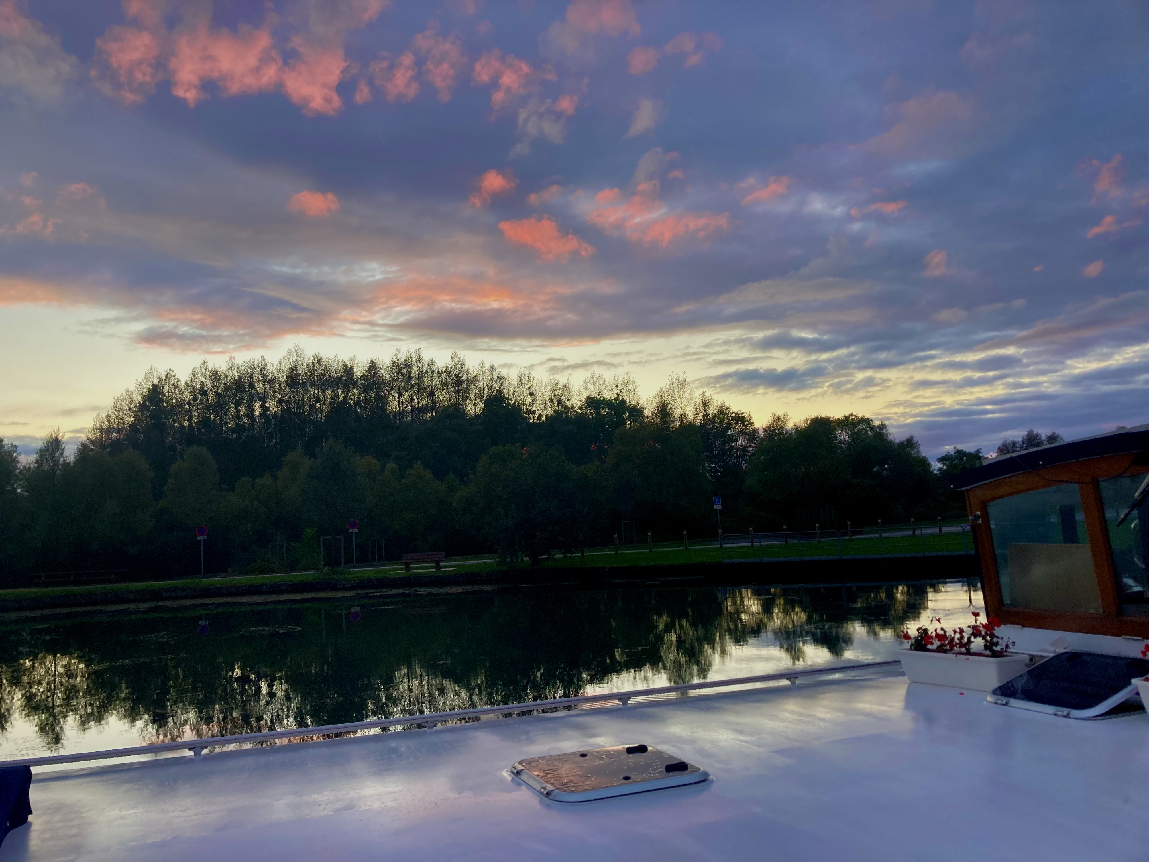 All we had to do, once tied up, was to sit back and enjoy our supper, watching the constantly changing colourful skies, often a feature at the Soulanges mooring.