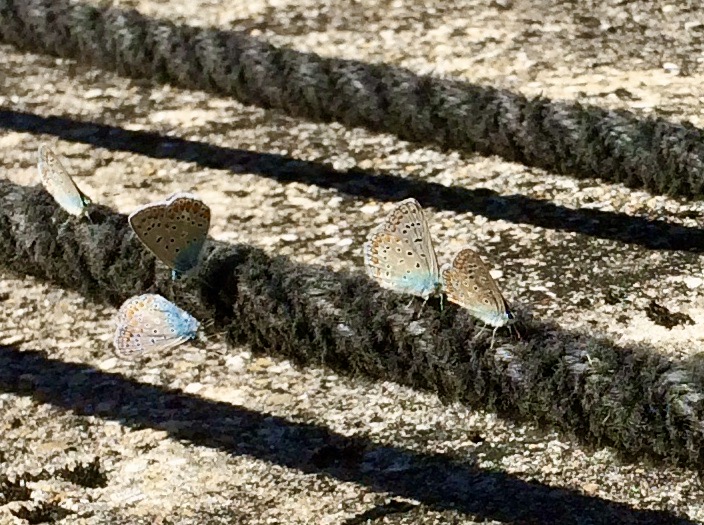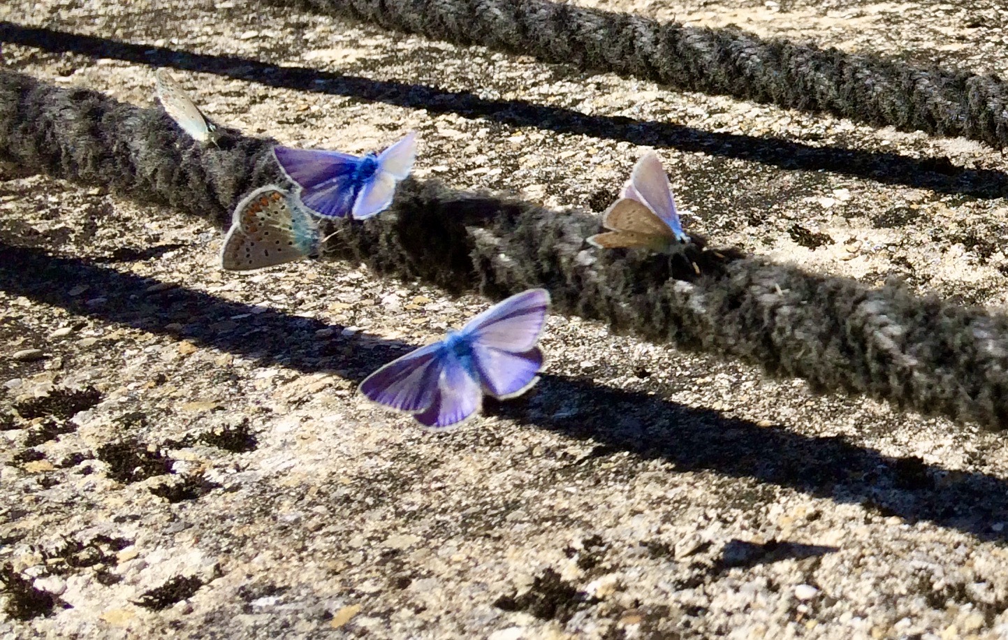 And to sign off, photos at the old quarry quay mooring from a previous year showing a kaleidoscope of butterflies on our ropes.