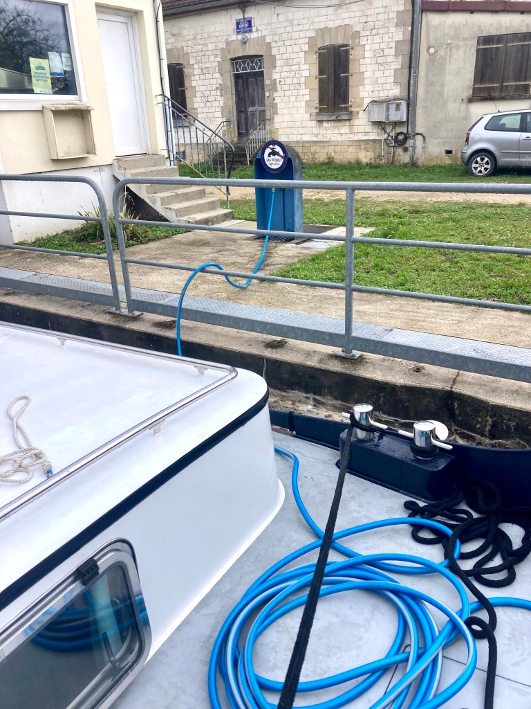 We arrived at the Sept-Saulx basin with a strong wind blowing us off shore and not making it at all easy to moor up. But within a few minutes we had the boat secure.