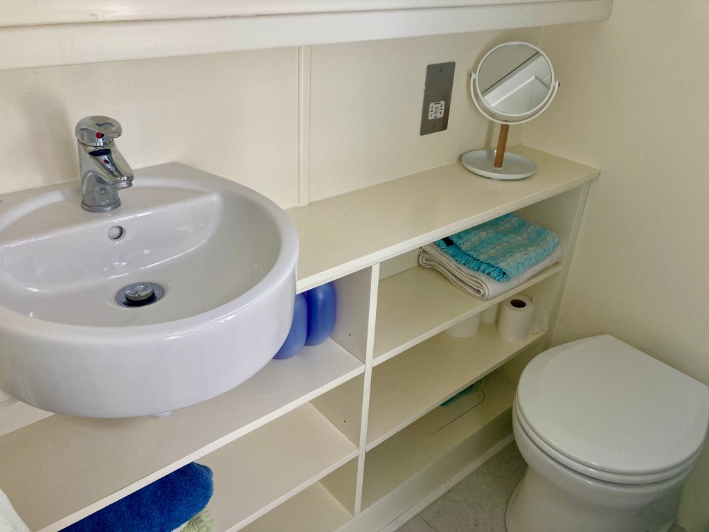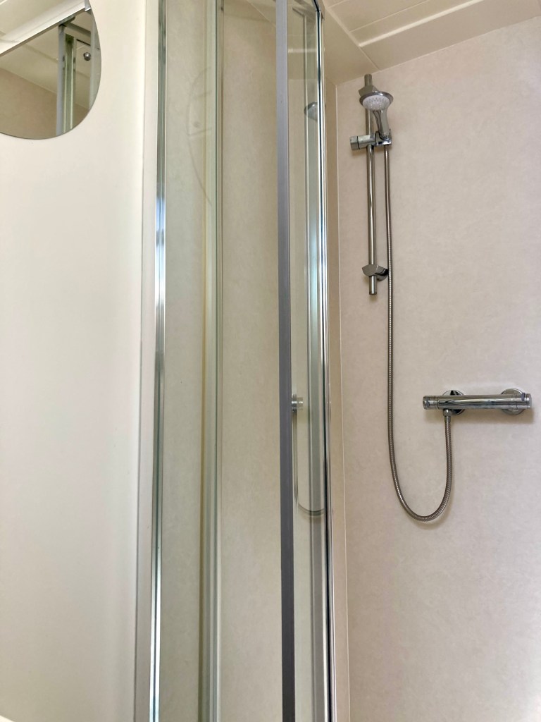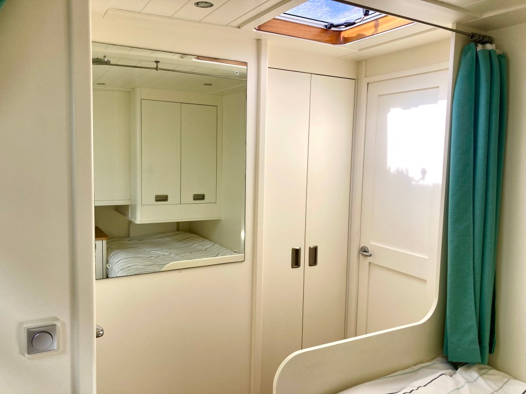 Cabin 2 is towards the stern and ideal for friends or family with its comfortable, long, twin bunks and its own ensuite with shower.