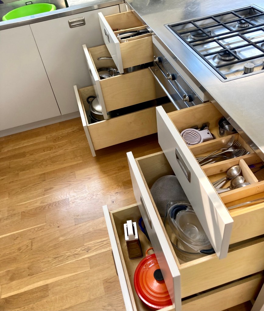 The galley is specially designed for people who like to cook, with gas hob and oven, and big full height fridge with freezer box …..