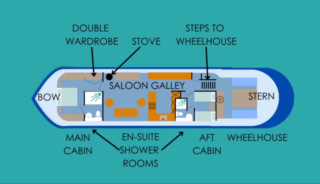 Calliope sleeps 4-8 people and has some features that make her a little different to some of the other barges from the fantastic Piper Boats company. For example, the two cabins are situated fore and aft, providing greater privacy for guests.