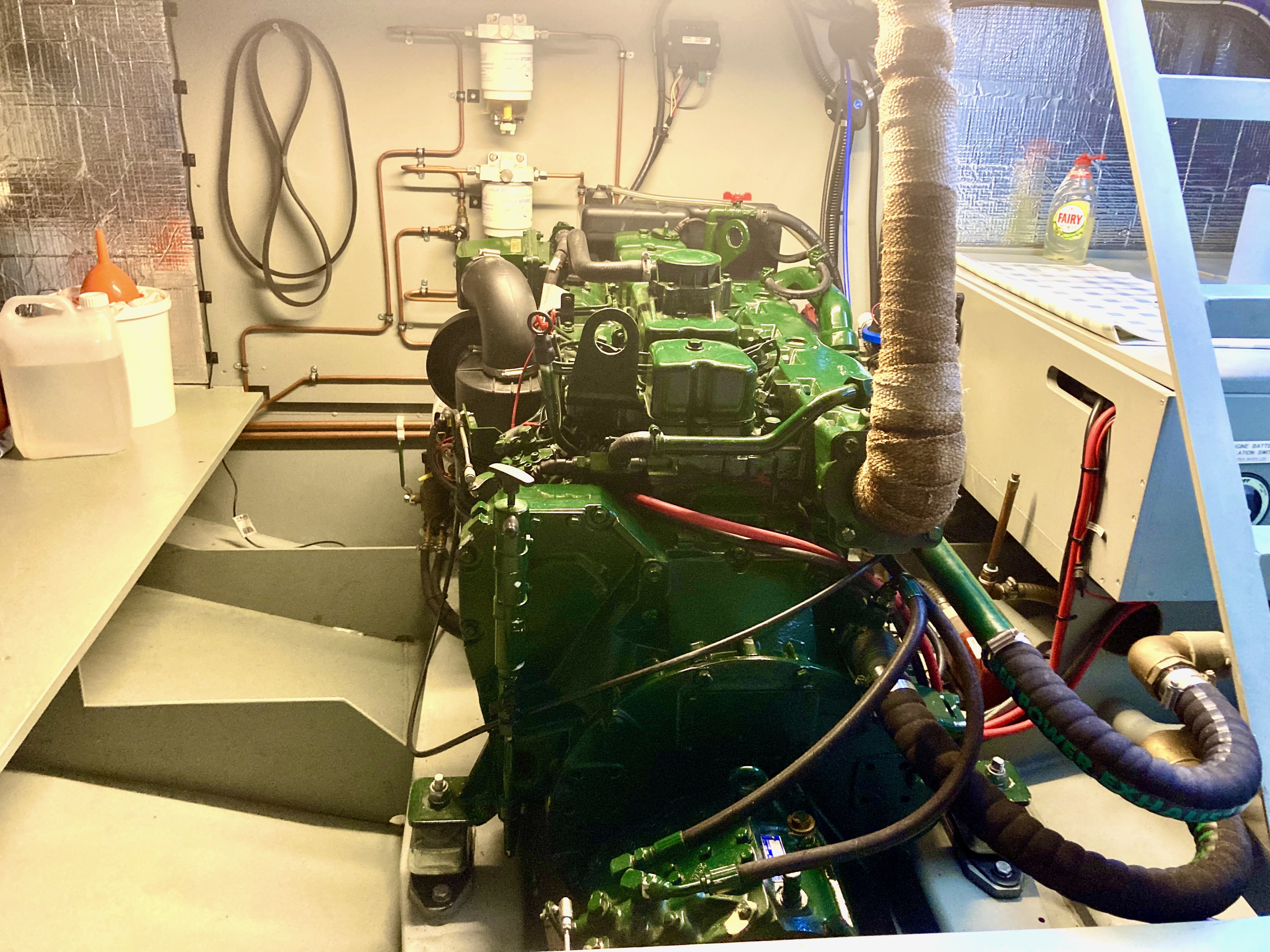In addition to the 150hp BetaMarine engine it houses the Bubble PJ diesel powered boiler, hot water tank, DAB Easybox pump for domestic water (new 2024) and the pumps for black and grey water waste.
