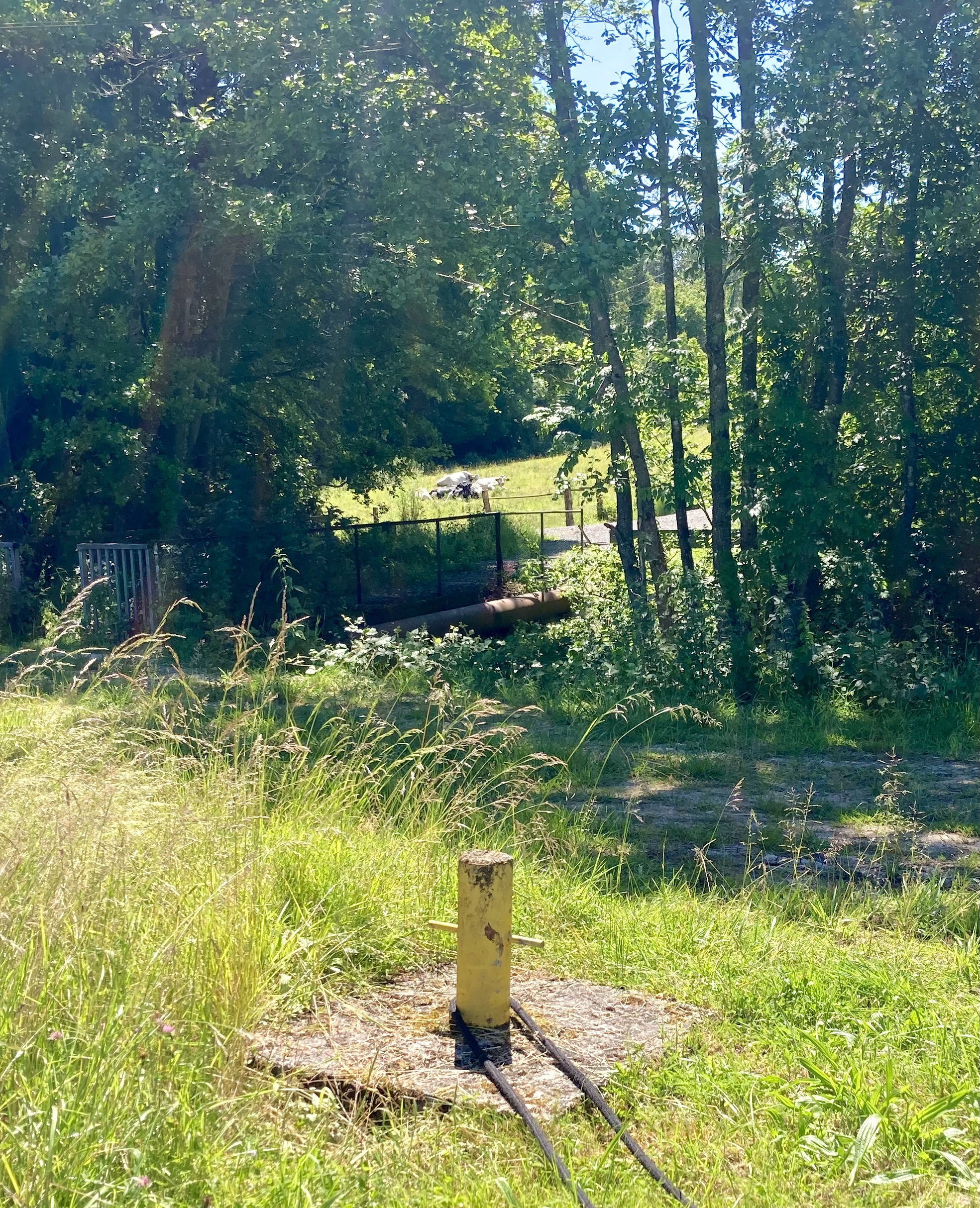 Unfortunately nothing happened. Many presses of the relevant button had no effect. We looked for the sign to indicate the optimum place to use the remote; had we passed it? In the end we phoned for help. After about half an hour the welcome little white Visuris van arrived and put helper stopped out into the rain to put things right.
