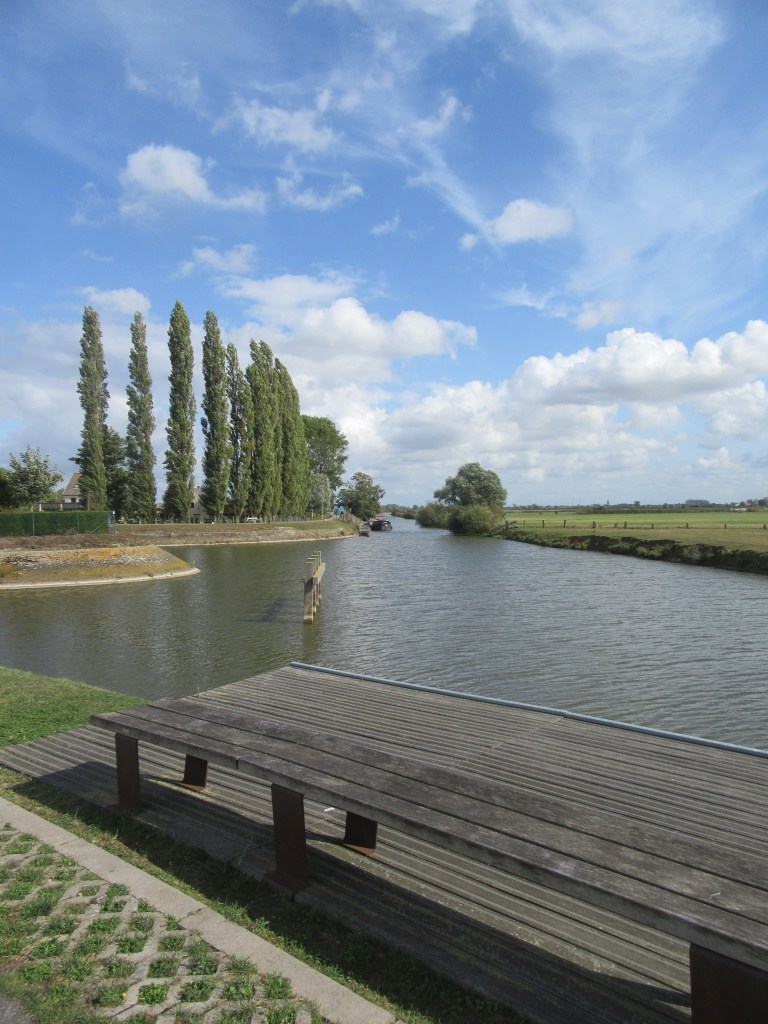 Before long we met the Albertkanaal, marked at its beginning with the HUGE Albert monument, sadly in the shade on our approach.