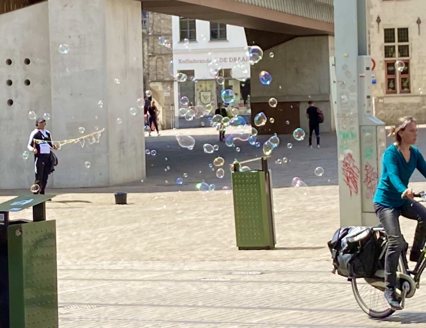 Liège is the third largest city in Belgium and the old quarter is full of ancient churches, squares and lanes – and also full of the bustle and hustle of a modern centre with shopping arcades and busy streets. But our mooring was effectively on a large island, mostly given over to a pleasant park popular with the Liègoise. (Apologies again – I just can’t keep out of water!)