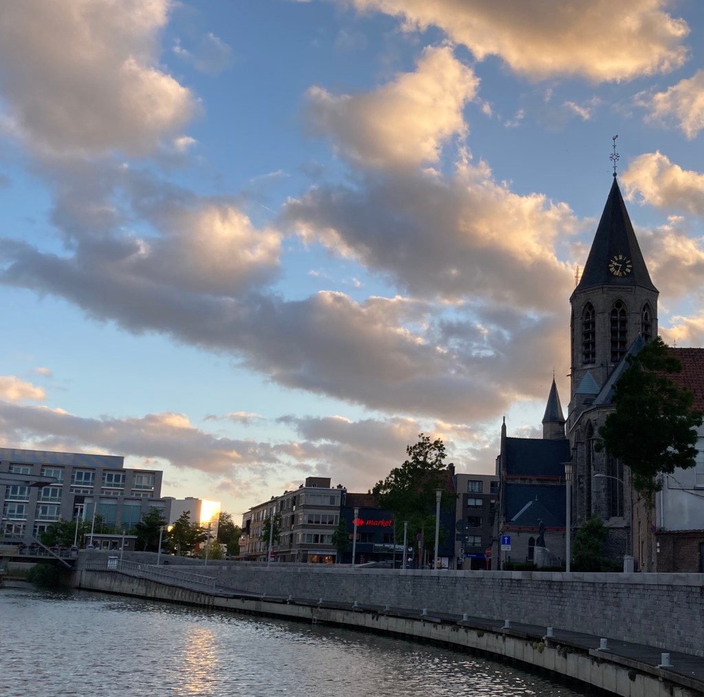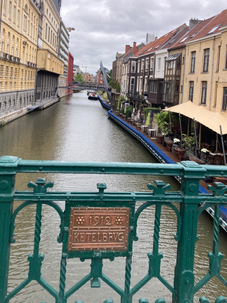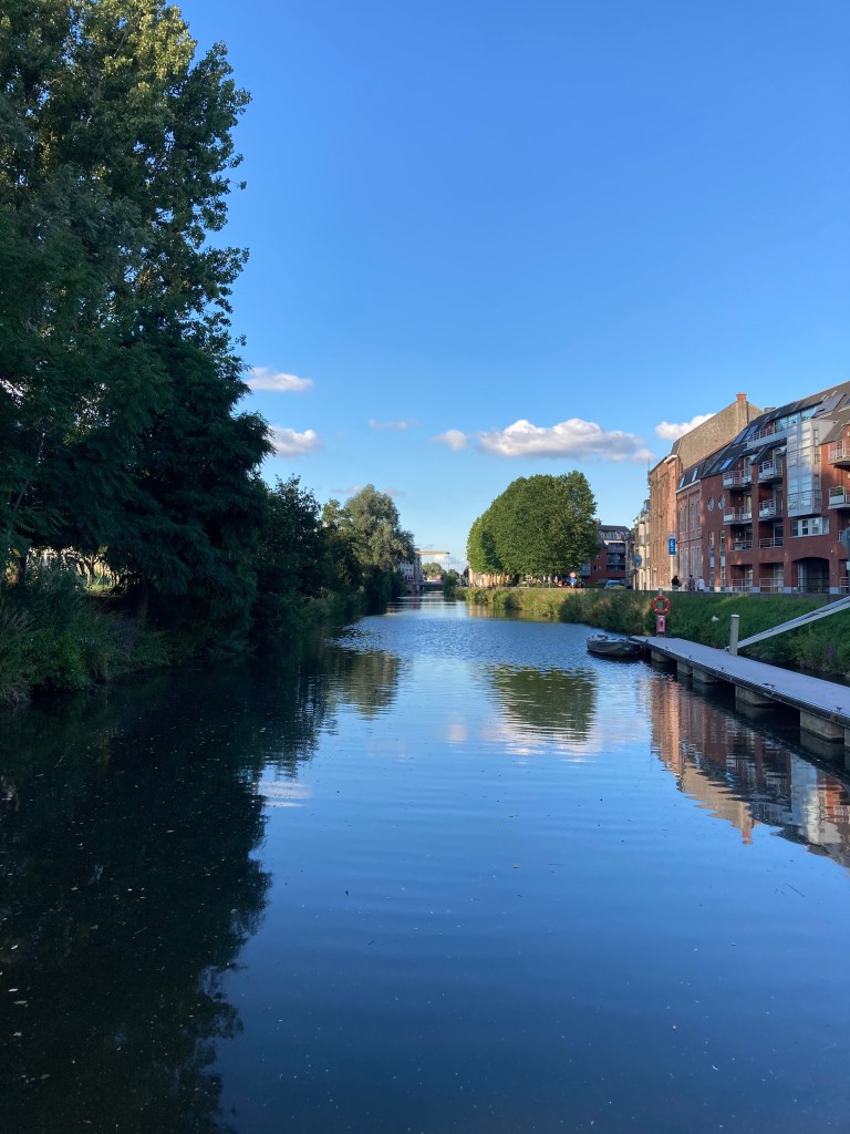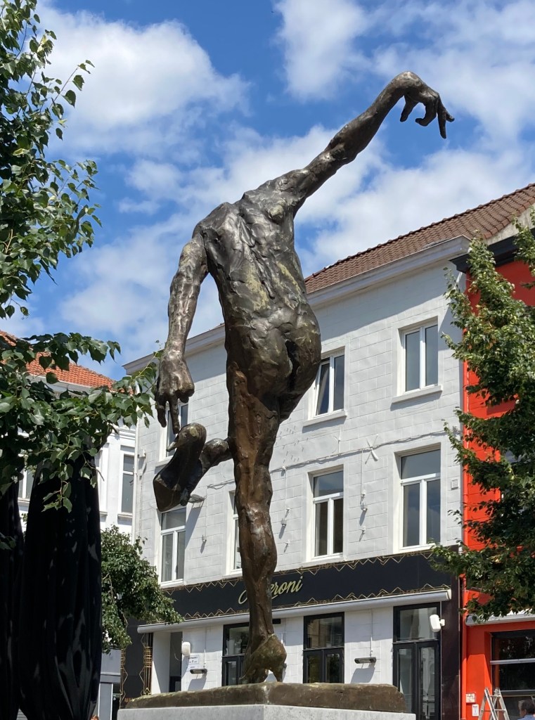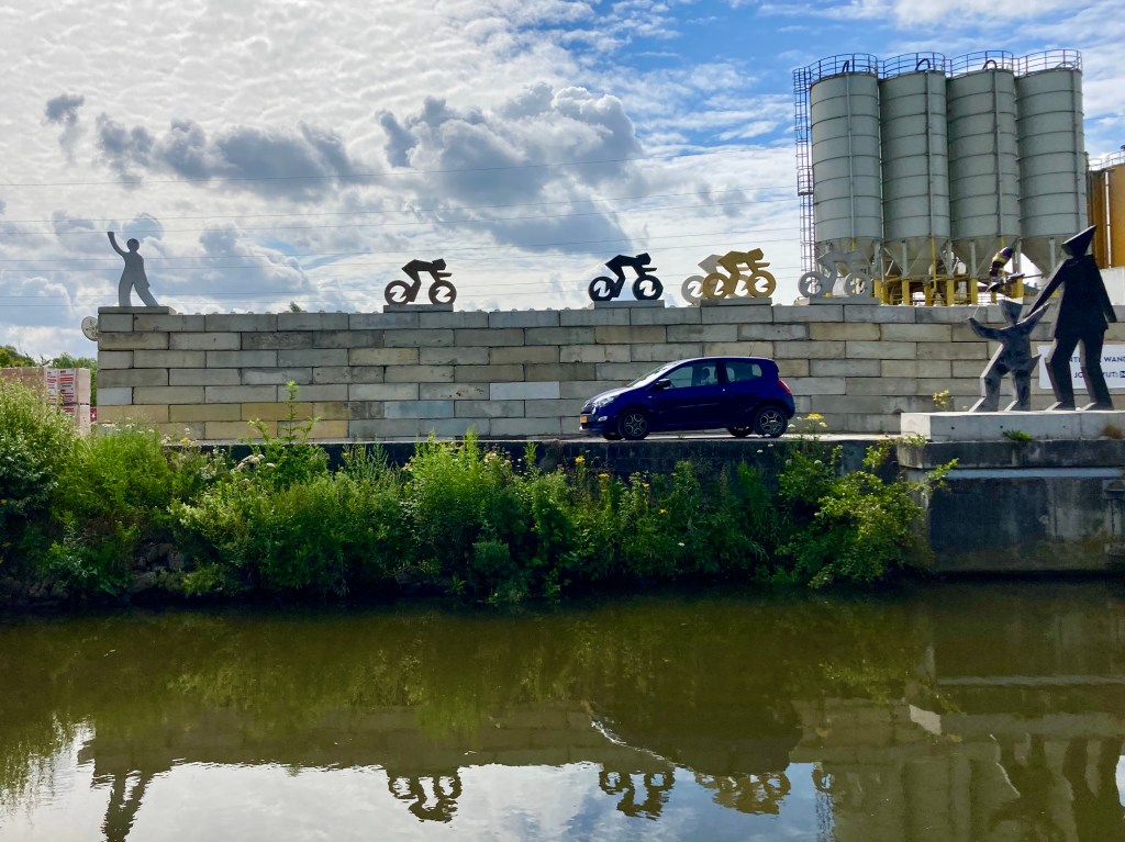 We set off under the many bridges of Liège, past many wonderful buildings, and my favourite statue. Oh that I had that energy and bounce in my body now.