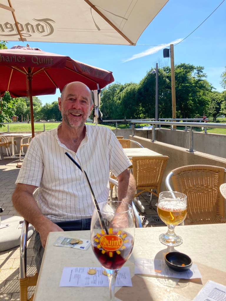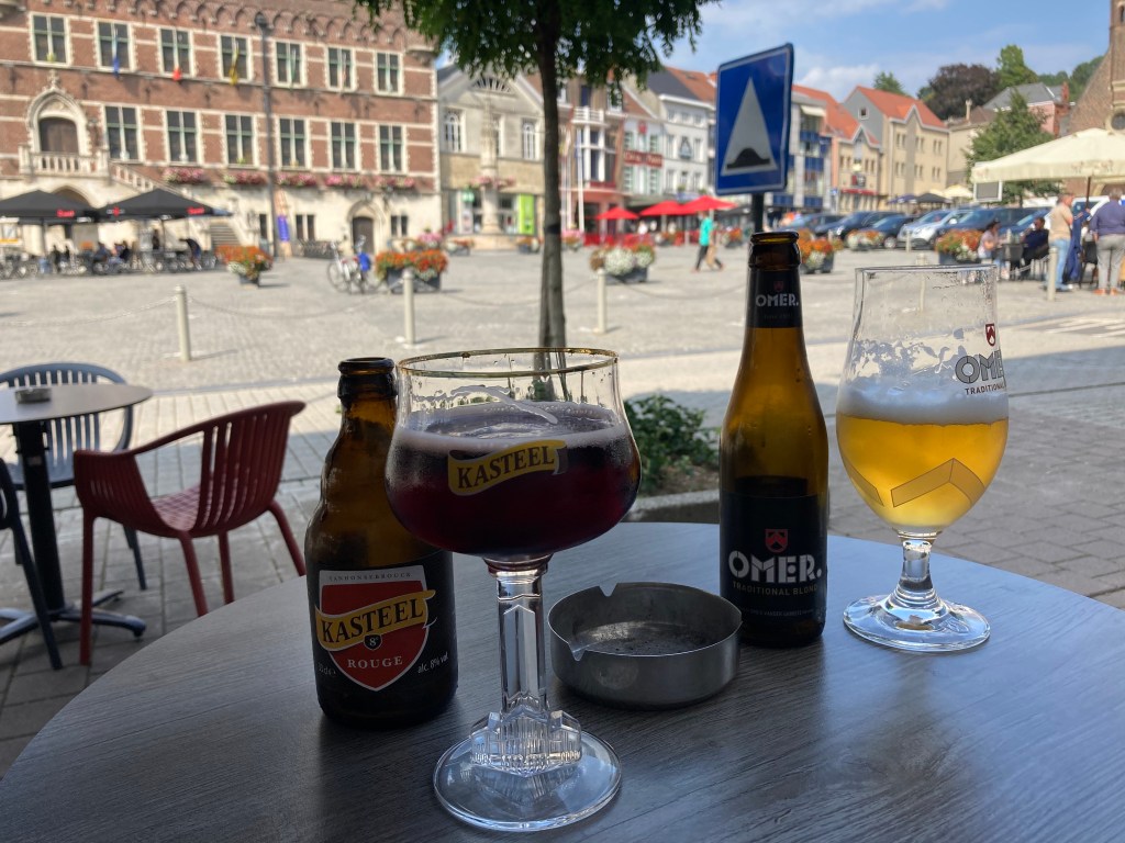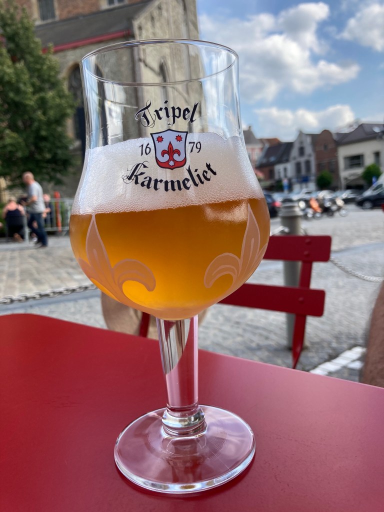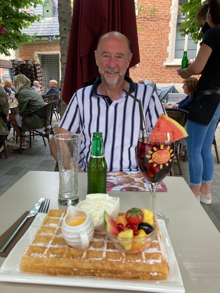 It will come as no surprise to readers of this blog that we had worked up a thirst for a beer in the square by the time we climbed back down. We arranged to meet the Captain by the 15th century fountain, Li Bassinia, (Huy wonder 2). He was ready and waiting with a hop and a skip ….