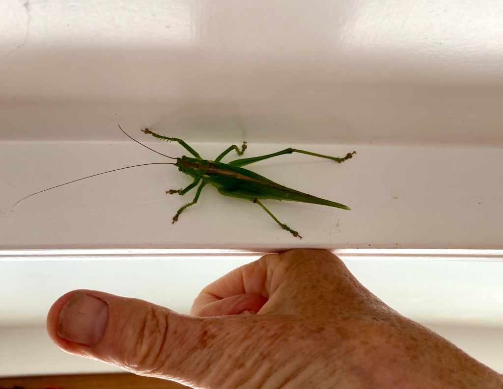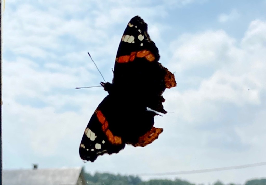 After a siesta the evening light was just right for deadheading geraniums, a gentle supper and cold drinks on the back deck, again! And we were joined by a butterfly – maybe a comma?