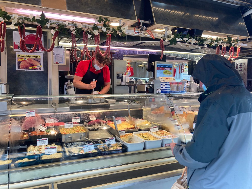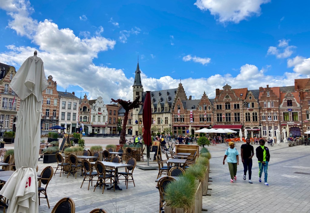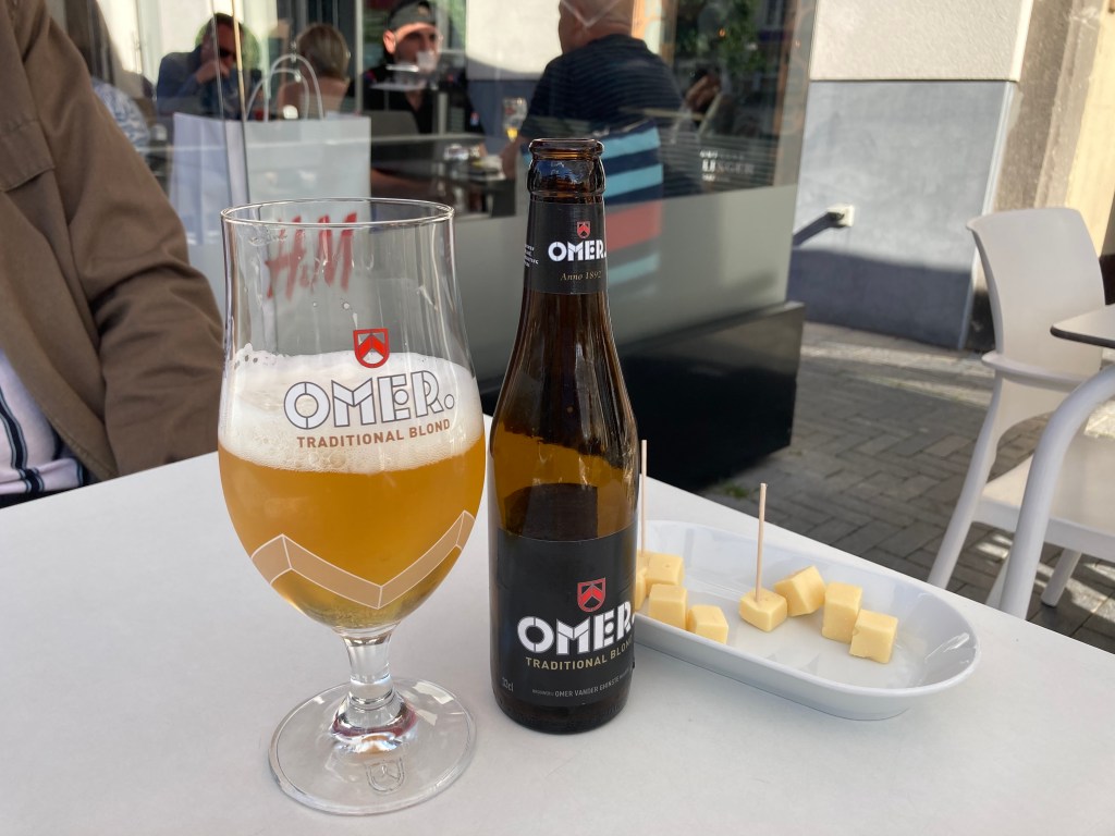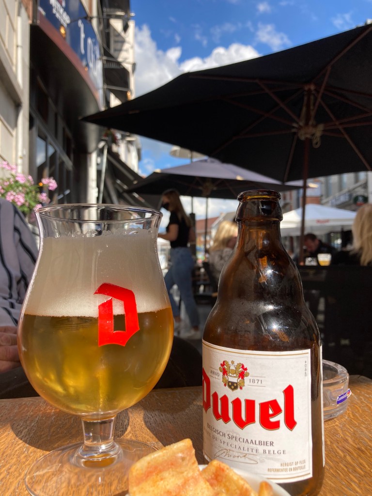 A last beer in Huy square before checking into the fritterie on the quayside – most excellent!