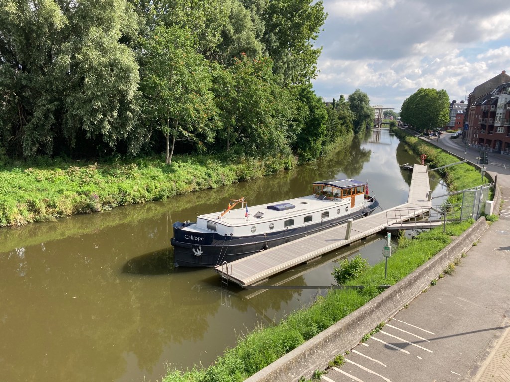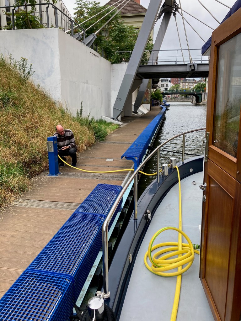 We came under the famous bridge at Liège and found the long pier where we planned to moor completely empty! So we had our choice of places to tie up.