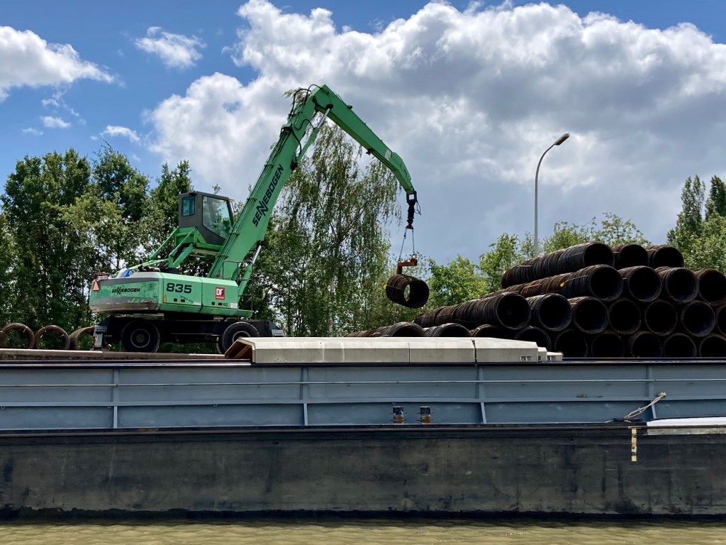 Our next move, a little further downstream, was to moor up to a high quay in the lea of an island. This gave us some protection from the wash and turbulence of the big commercial barges ploughing up and down the river.