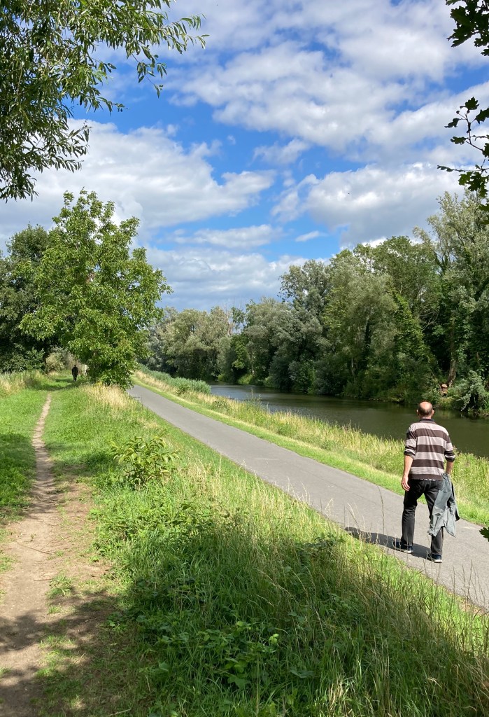 Then we were through the lock and cruising along the Maas, fully expecting to find a nice mooring in the shade somewhere. But it was not to be. After the full 10 kilometres of the river between Monsin and Visé, including the port at Visé, we found nowhere suitable.