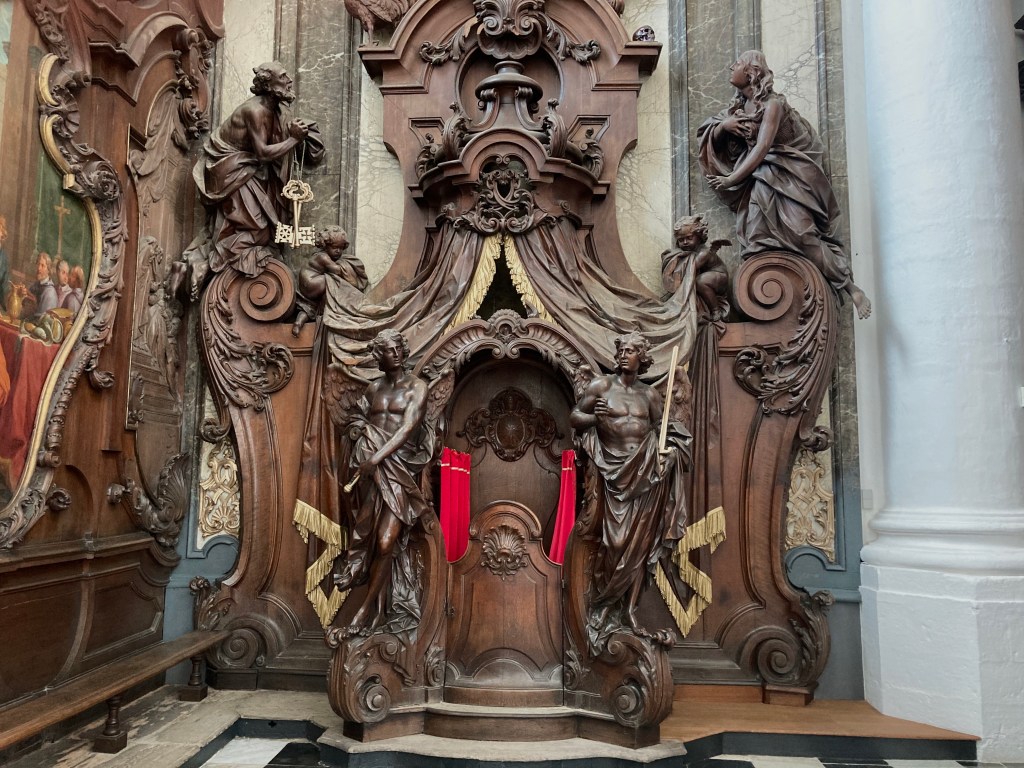 We also went top the cathedral and saw the last of thew four wonders of Huy – Li Rondia – the rose window. My photos does not do it justice, nor justice to the East window and part of a wonderful art exhibition that was there at the time.