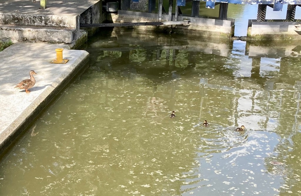 The water that floods under the central section of the pier made this a surprisingly bumpy mooring each time a commercial barge went by – and even more so when two passed each other beside us! This is warning for those who follow us; moor towards one end or the other of the pier, avoiding the section where you can see the water flows beneath! We moved after a couple of nights as the commercial boats move from about 5.30am until about 10pm!